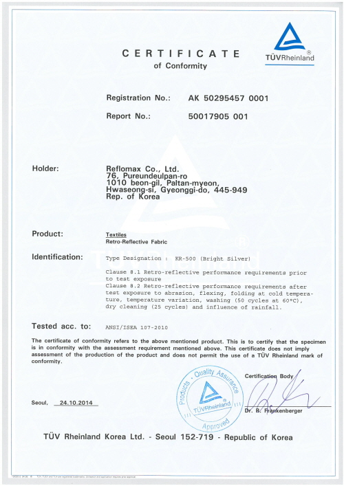 ANSI/ISEA207 for KR-500
